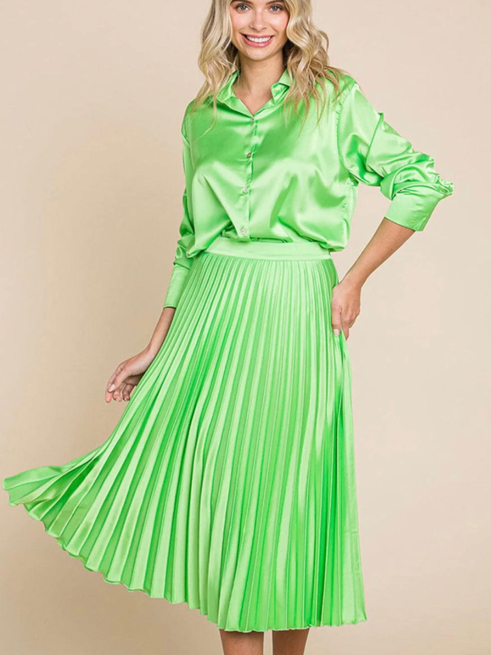 Green Pleated Midi Skirt