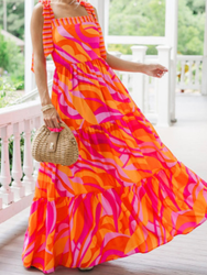 This is the most Beautiful piece! Gorgeous and Bright colors, with self tie straps, making the detail just gorgeous!! Runs TTS, can adjust ties.